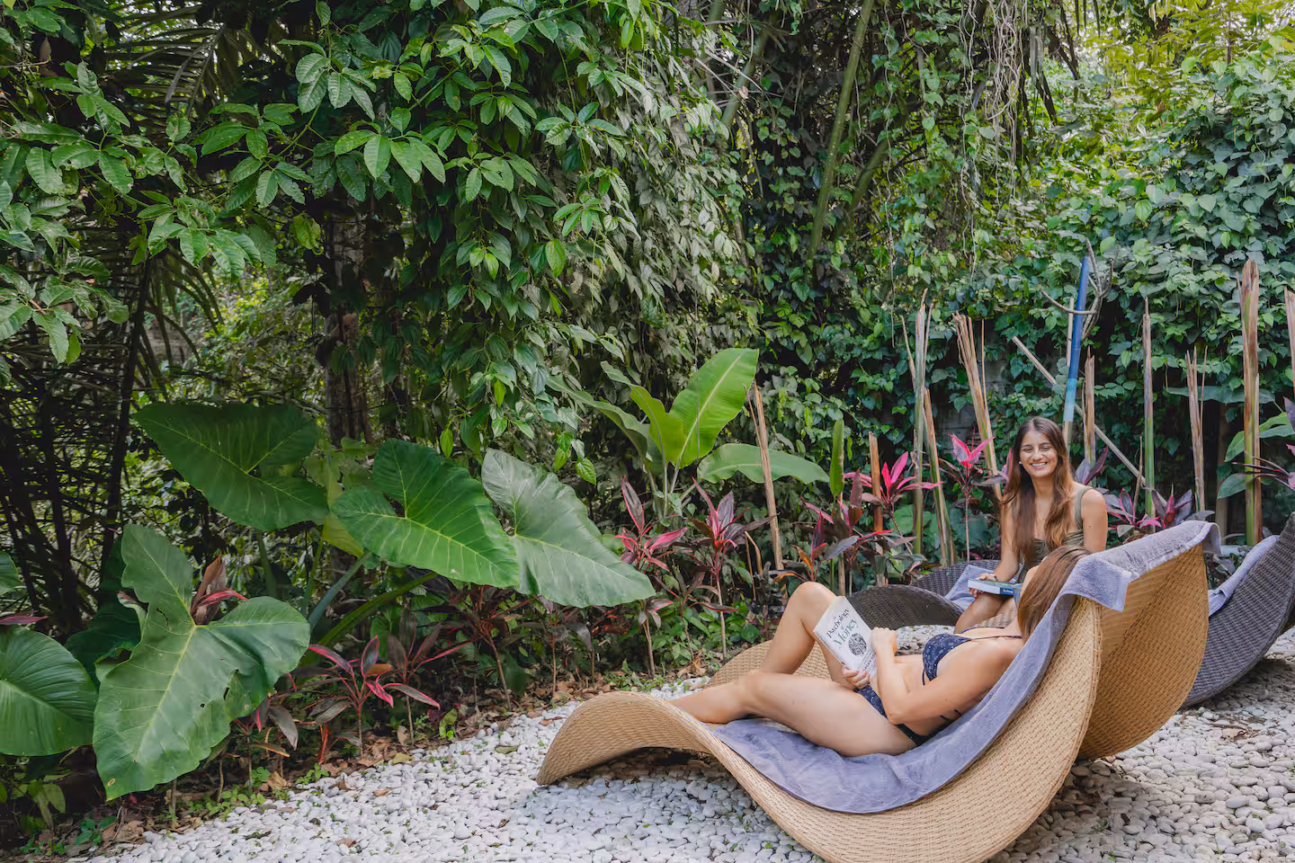Our spacious garden is the perfect space to connect with the luscious, exuberant green of Bali’s jungle. The smell of the earth, the sounds of birds chirping, and the atmosphere can’t be described in pictures… You have to experience it